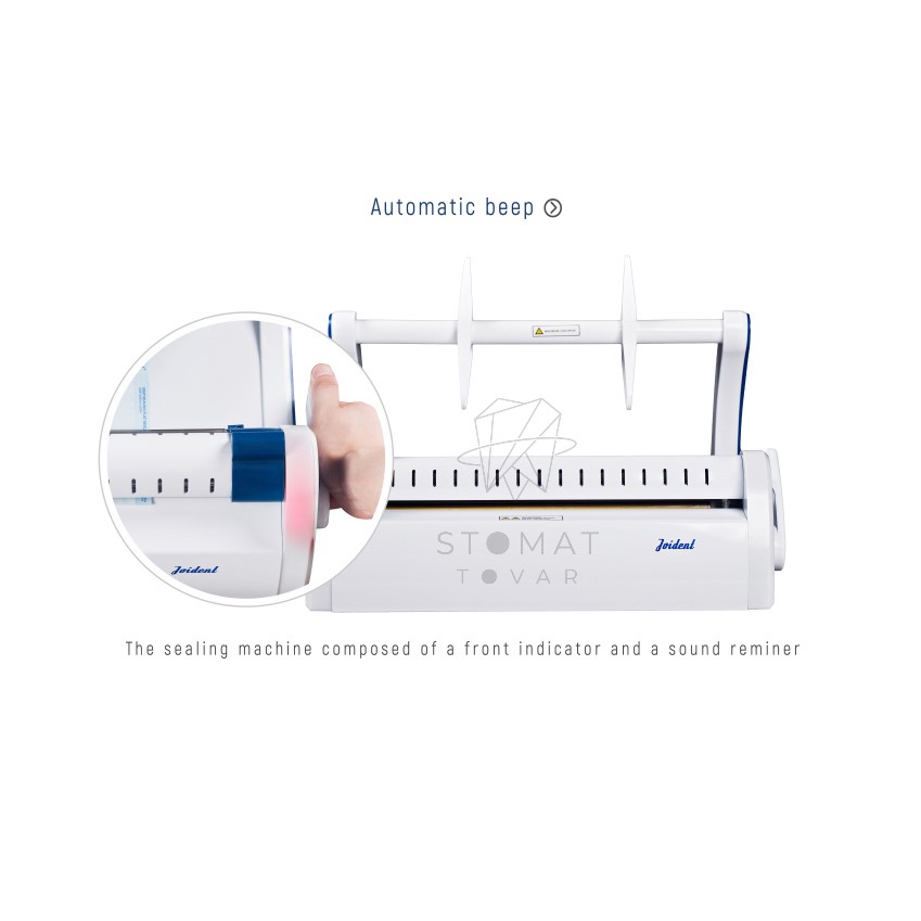 - пакувальна машина JOIDENT служить для упаковки стоматологічного інструментарію, що пройшов передстерилізаційну обробку, у пакети та подальшого герметичного запаювання (запечатування). Створює рівний, щільний і герметичний шов шириною 12 мм.