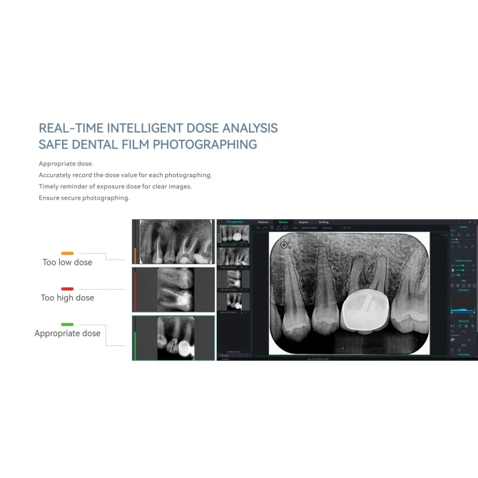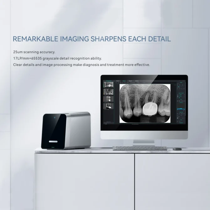 Цей прилад використовується для сканування інформації із зображення пластини IP-зображення для формування внутрішньоротового цифрового рентгенівського зображення, а також для перегляду, обробки та редагування зображення.
